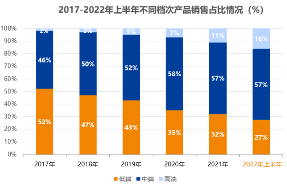 2、中高端產(chǎn)品增長(zhǎng)顯著,產(chǎn)品高端化持續(xù)演進(jìn)