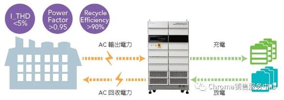 此外,Chroma也提供回收式電網(wǎng)模擬電源,讓待測物在測試中所產(chǎn)生的能量,經(jīng)由機(jī)器可高效率回饋到電網(wǎng),而非在測試過程以熱能消耗,適用于綠能相關(guān)產(chǎn)業(yè)測試,如太陽能逆變器、儲能系統(tǒng)(ESS)、電力調(diào)節(jié)系統(tǒng)(PCS)、微電網(wǎng)(Micro grid)、電力相關(guān)硬體回路模擬(PHIL)、電動車電源設(shè)備(EVSE)、車載充電器(OBC)及雙向車載充電器(BOBC)等。