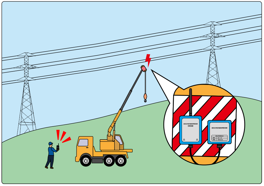 ETCR1900高壓近電防觸碰智能預(yù)警裝置為電力作業(yè)車輛提供一款智能化高壓近電報警裝置。在作業(yè)車輛靠近高壓輸電線一定距離時,裝置發(fā)出報警信號,提醒作業(yè)人員設(shè)備已接近高壓電,注意危險,避免作業(yè)車輛的吊臂觸碰高壓輸電線,保護(hù)作業(yè)人員及電力設(shè)施的安全。裝置操作簡單、安裝簡單快捷,為在高壓線路環(huán)境下作業(yè)人員提供了一款安全、實用、便捷的高壓預(yù)警設(shè)備。