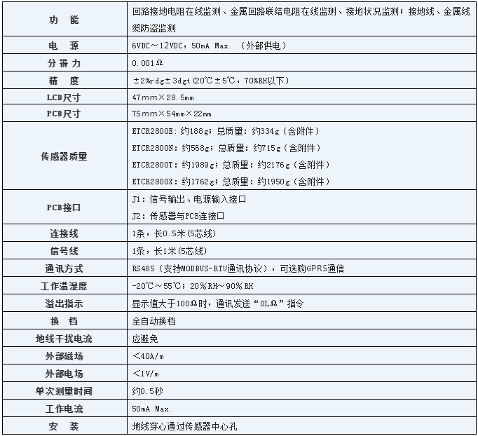 ETCR2800N為大口徑傳感器,適合大尺寸的接地引下線;傳感器和電路板模塊需安裝于機箱內。