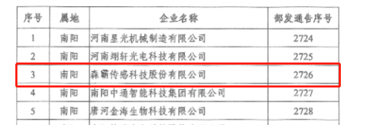 近日,國家工業(yè)和信息化部正式公布了第四批專精特新“小巨人”企業(yè)名單,森霸傳感科技股份有限公司被正式授予國家級專精特新“小巨人”企業(yè)稱號。