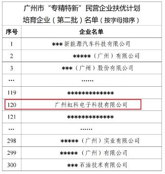 廣州虹科電子科技有限公司憑借出色的綜合實力和驚人的發(fā)展?jié)摿?,成功入選廣州市“專精特新”民營企業(yè)扶優(yōu)計劃。入選企業(yè)名單目前已印發(fā)公布。