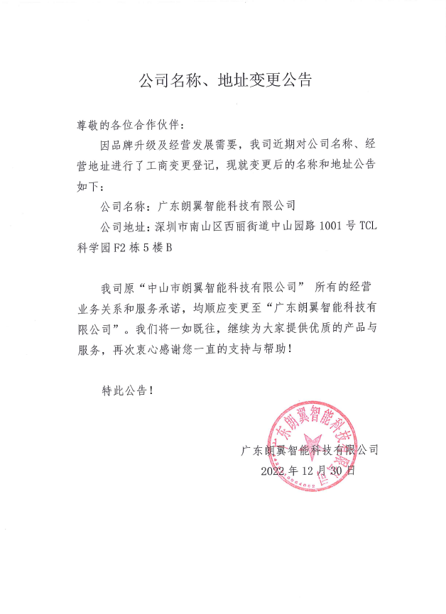 近日,“中山市朗翼智能科技有限公司”已正式更名為“廣東朗翼智能科技有限公司”,踏上了新的征程。1月6日,新年伊始,公司又迎來了喬遷之喜,與總公司朗馳欣創(chuàng)一同正式搬遷至深圳市南山區(qū)TCL科學(xué)園。當(dāng)日,喬遷儀式在新辦公大樓隆重舉行,公司領(lǐng)導(dǎo)層及全體員工歡聚一堂,共同見證公司發(fā)展史上具有里程碑意義的重要時(shí)刻。