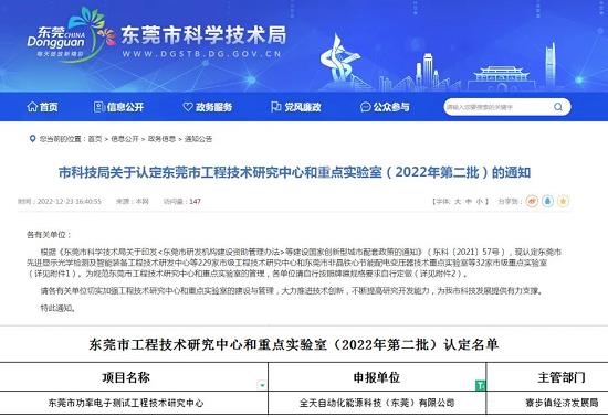 同時,在東莞市科學(xué)技術(shù)局公示了2022年第二批東莞市工程技術(shù)研究中心和重點實驗室認(rèn)定名單,作為南城區(qū)功率電子測試代表企業(yè),APM全天科技正式通過公示階段,獲批“東莞市功率電子測試工程技術(shù)研究中心”。