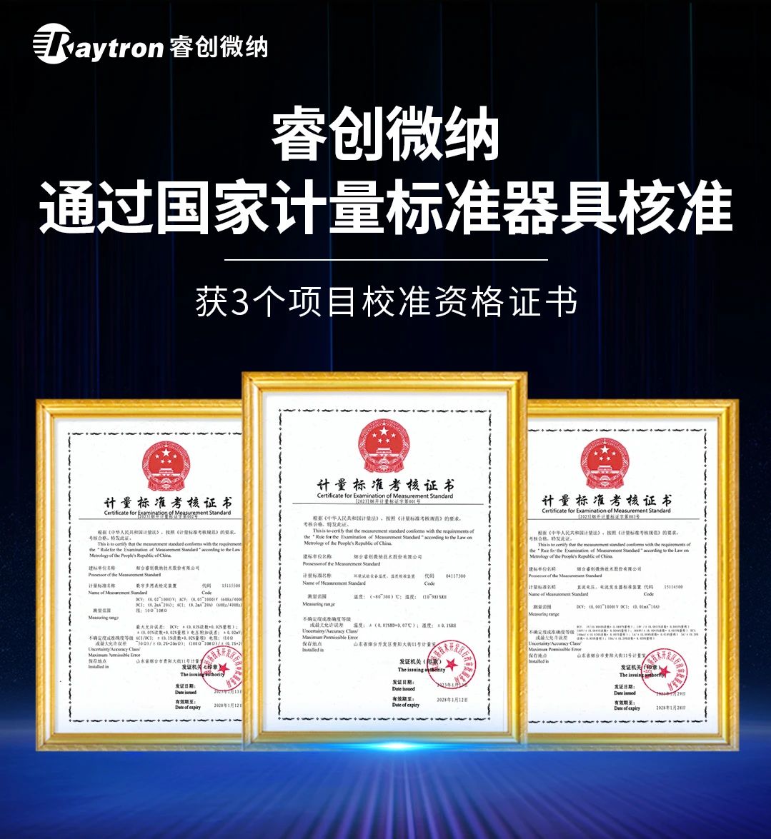 近日,睿創(chuàng)微納可靠性試驗與檢測中心順利通過國家計量標準器具核準,取得熱工和電學領域的3個校準資格證書。