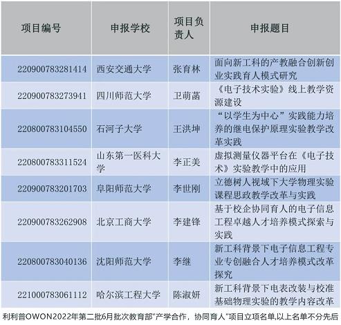 利利普OWON參2022年第二批第批的產(chǎn)學(xué)合作協(xié)同育人項(xiàng)目,經(jīng)教育部最終嚴(yán)格審核,具體名單現(xiàn)公布如下: