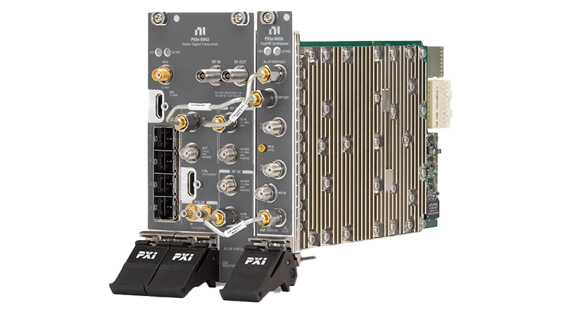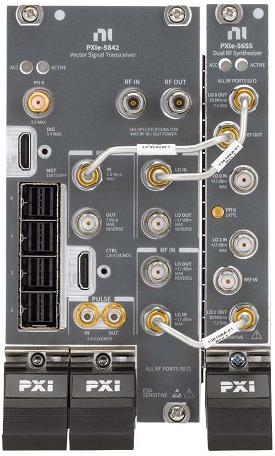 PXIe-5842則是進(jìn)行了全面升級,包括VSA和VSG均支持最高23GHz的工作頻段(未來可升級支持至26.5GHz),瞬時(shí)帶寬高達(dá)2GHz;擁有高性能雙LO合成器,用于RF輸出和RF輸入的唯一LO鏈;多儀器同步,通過相位相干擴(kuò)展通道數(shù),跨PXI背板實(shí)現(xiàn)LO/REF共享以及TGlk同步;高速串行接口,MGT-16通道,16Gbps,IQ數(shù)據(jù)全速率(2GHz帶寬)流式傳輸至NI FPGA協(xié)處理器;集成式RF信號鏈鎖脈沖調(diào)試,可優(yōu)化開/關(guān)比,與脈沖寬度;結(jié)構(gòu)小巧,僅需4個(gè)PXI插槽。
