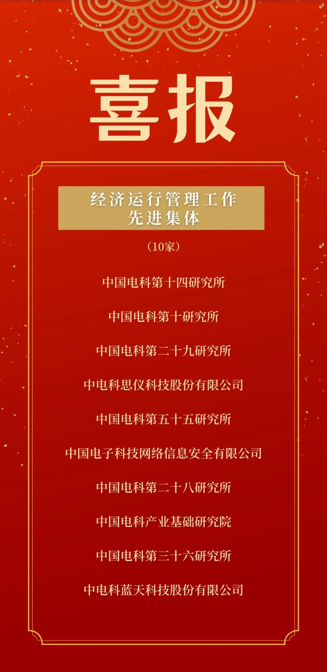 近日,中國電科表彰了2021-2022年度經(jīng)濟運行管理工作先進集體和先進個人,電科思儀被評為中國電科2021-2022年度經(jīng)濟運行管理工作先進集體。
