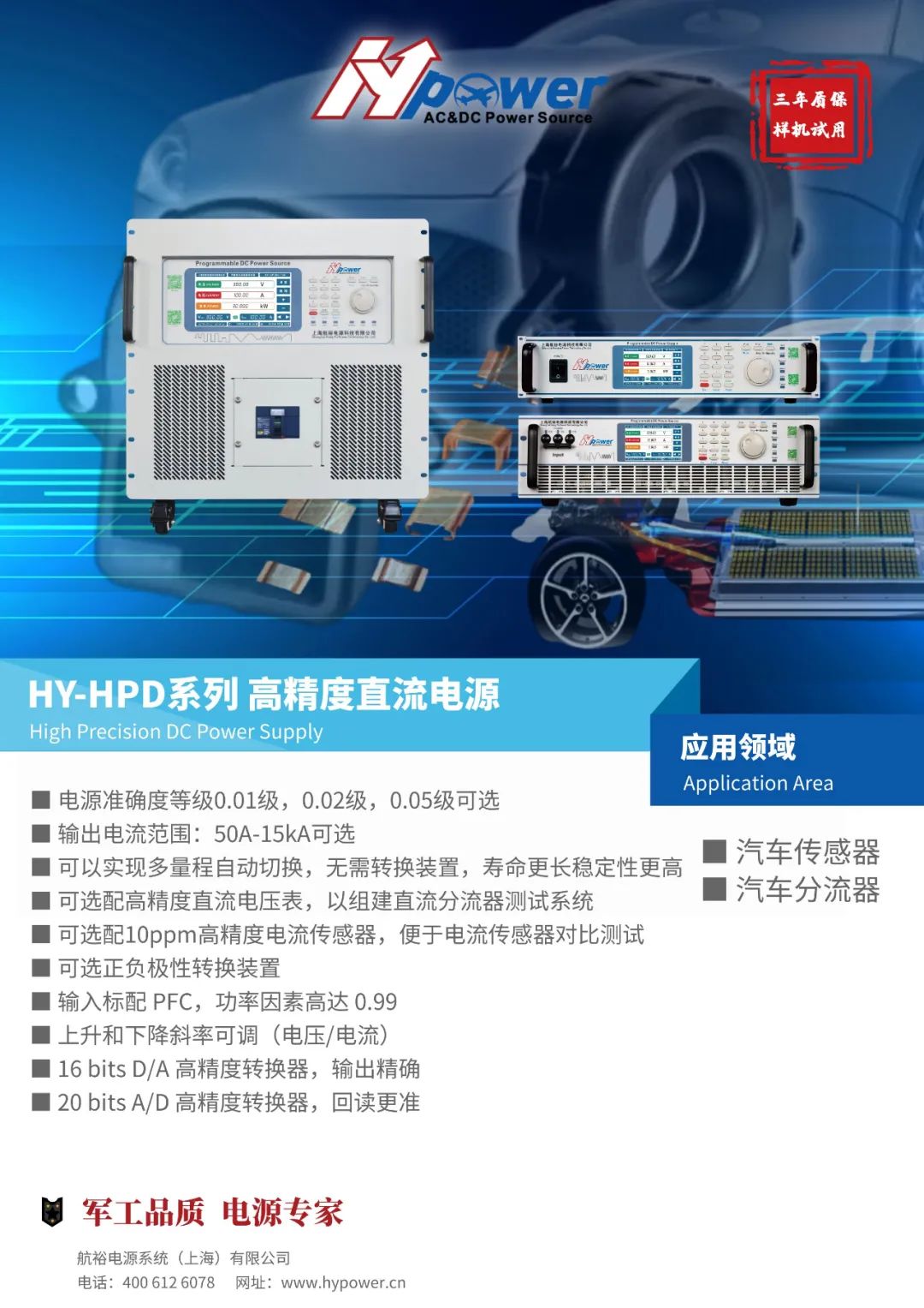 航裕電源HY-HPD系列高精度直流電源,精度0.01級,0.02級,0.05級可選,可選配多種功能,滿足汽車傳感器和分流器的標(biāo)定精度需求。航裕電源還將攜高精度高壓表和電流表,為客戶測試測試提供全面升級服務(wù)。展會召開在即,航裕電源誠邀您蒞臨航裕展臺。
