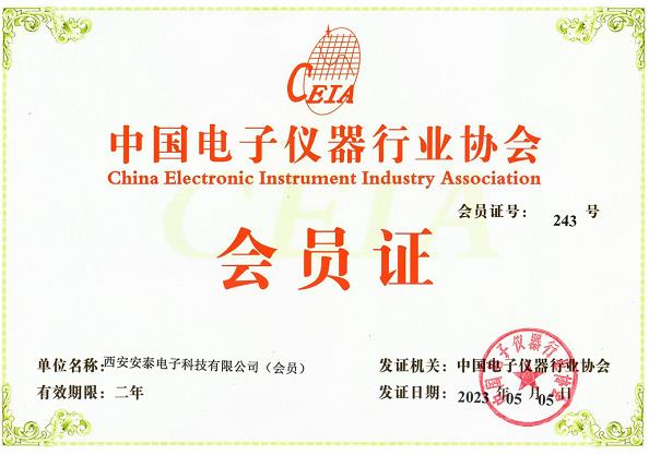 2023年5月5日,西安安泰電子科技有限公司經(jīng)中國(guó)電子儀器行業(yè)協(xié)會(huì)(英文縮寫:CEIA)審議批準(zhǔn),正式成為該協(xié)會(huì)會(huì)員單位。