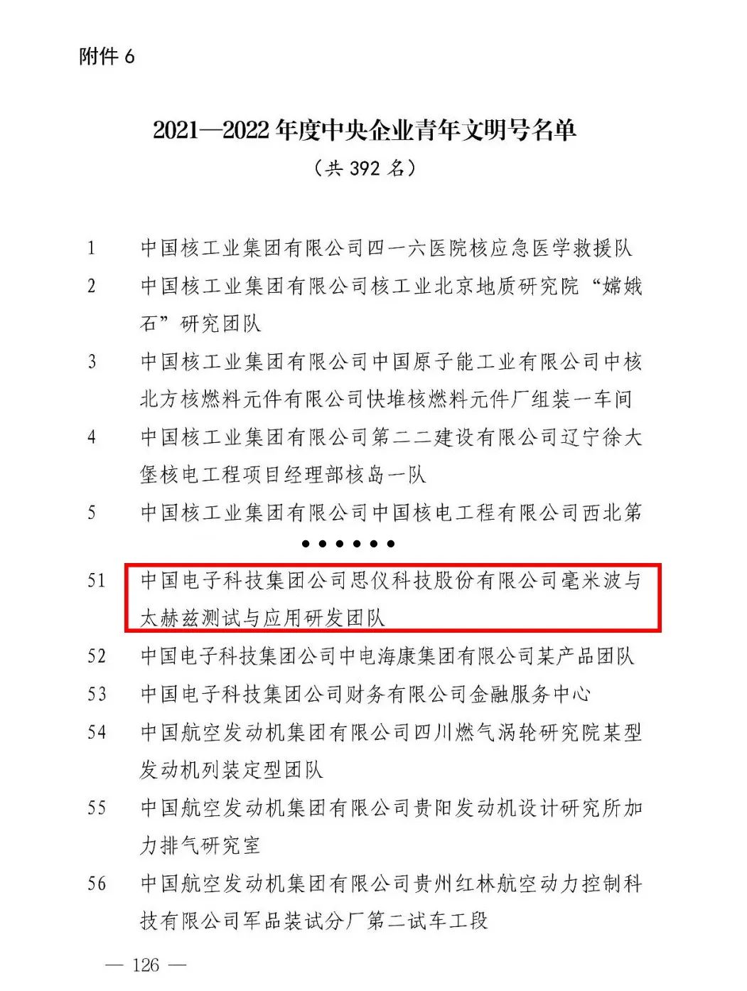 近日,中央企業(yè)團(tuán)工委發(fā)文表彰2021—2022 年度中央企業(yè)五四紅旗團(tuán)委、五四紅旗團(tuán)支部、優(yōu)秀共青團(tuán)員、優(yōu)秀共青團(tuán)干部、青年崗位能手,命名中央企業(yè)青年文明號,電科思儀“毫米波與太赫茲測試與應(yīng)用研發(fā)團(tuán)隊”被命名為中央企業(yè)青年文明號。
