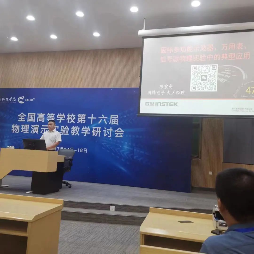 大區(qū)經(jīng)理以『固緯多功能示波器,萬(wàn)用表,信號(hào)源在物理實(shí)驗(yàn)中的典型應(yīng)用』在會(huì)中報(bào)告