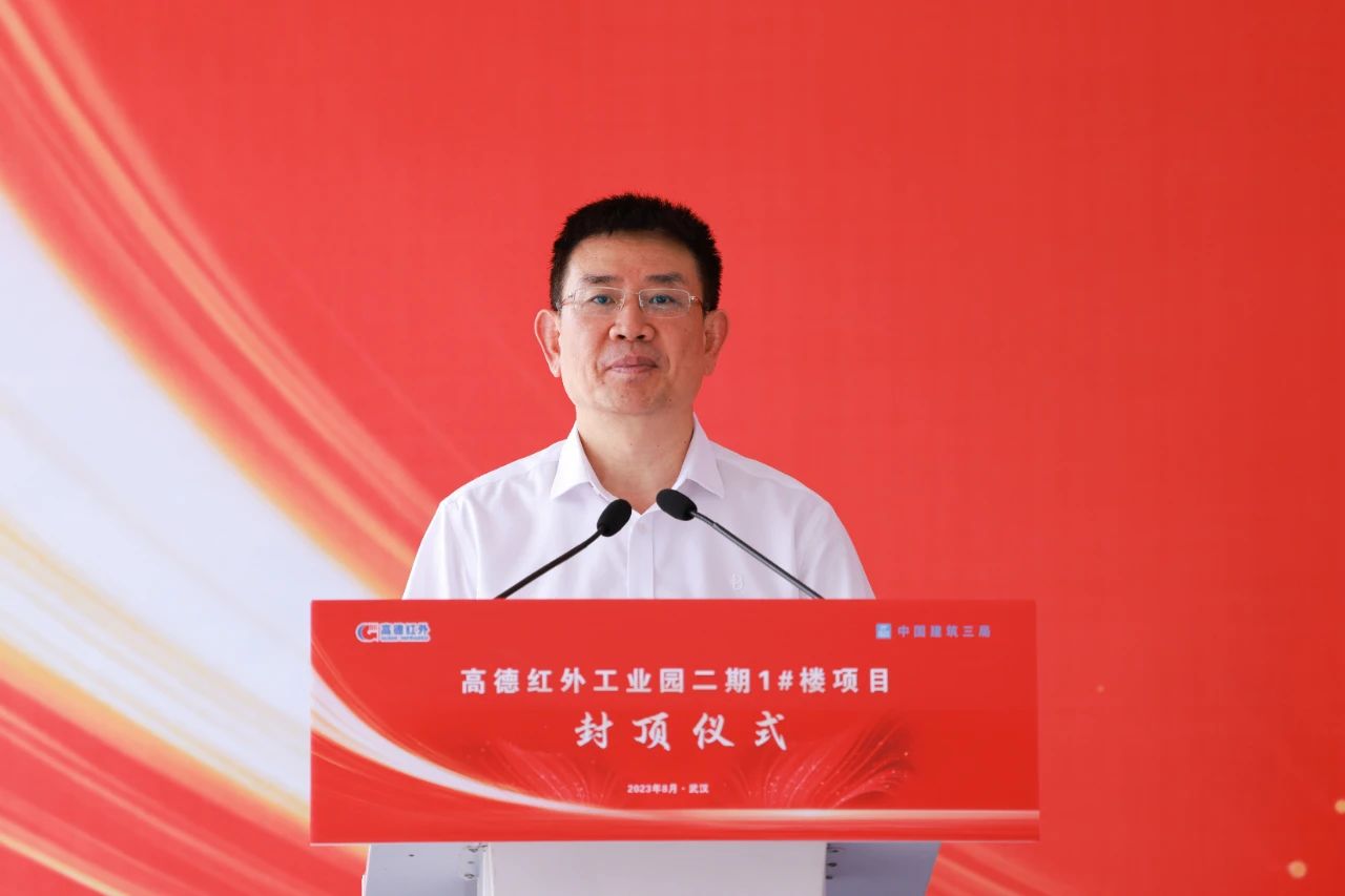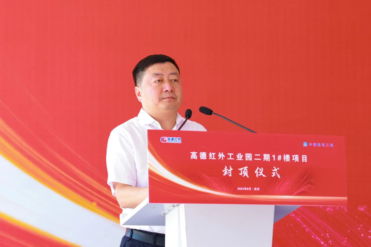 鄧偉華在致辭中對項目順利封頂表示祝賀,并向高德紅外給予三局的信任和支持表示感謝。他承諾,三局將一如既往地發(fā)揚“敢為天下先,永遠爭第一”的爭先精神,高質(zhì)高效推進后續(xù)建設,按時保質(zhì)完成施工任務,全力將項目打造成精品項目、示范工程。