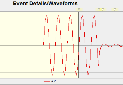 作為一個例子,下圖顯示了電壓驟降顯示在我們的Dran-View 7軟件中,記錄美國東海岸機場,測量400Hz飛機電源。