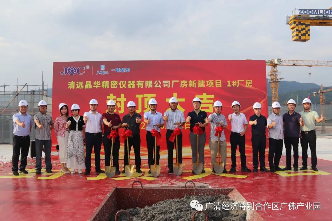 2023年8月22日下午,廣佛(佛岡)產(chǎn)業(yè)園清遠(yuǎn)晶華精密儀器有限公司廠房新建項(xiàng)目舉行封頂儀式,園區(qū)黨工委書(shū)記、管委會(huì)主任林吳養(yǎng),黨工委委員李光銳,管委會(huì)各局(辦)及企業(yè)負(fù)責(zé)人參加。