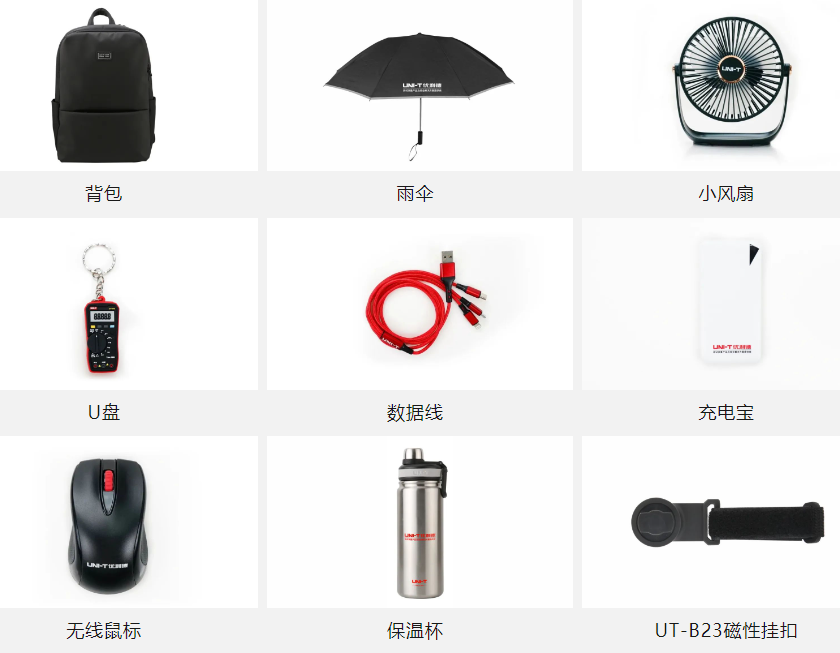 ①優(yōu)利德定制的背包、雨傘、保溫杯、充電寶、小風(fēng)扇、無(wú)線(xiàn)鼠標(biāo)、磁性?huà)炜邸盤(pán)等精美禮品。