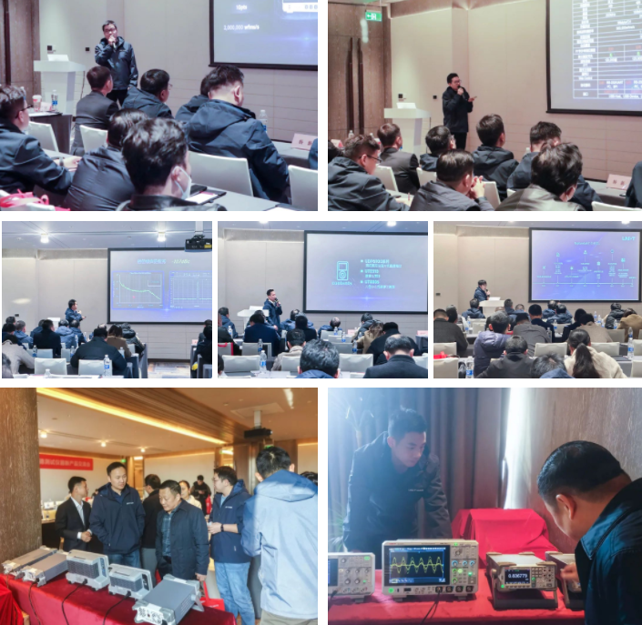 隨后,優(yōu)利德高端示波器負(fù)責(zé)人楊智忠先生、示波器產(chǎn)品線負(fù)責(zé)人宋大嵩先生、射頻微波及信號發(fā)生產(chǎn)品線負(fù)責(zé)人孫喬先生、東莞儀器開發(fā)部經(jīng)理吳忠良先生、市場部應(yīng)用工程師何聚仁先生分別介紹了混合信號示波器MSO7000X系列,數(shù)字熒光示波器UPO1000X系列,頻譜分析儀UTS5000A系列,UDP6900系列寬范圍可編程開關(guān)直流電源、UTE310數(shù)字功率計(jì)、UT8806六位半臺式數(shù)字萬用表、NeptuneLab實(shí)驗(yàn)系統(tǒng)綜合測試平臺,SaturnLab電力電子模型開發(fā)與實(shí)訓(xùn)系統(tǒng)以及2024年新品預(yù)告,全面展示了優(yōu)利德在測試測量領(lǐng)域的創(chuàng)新產(chǎn)品和解決方案,并就一些熱點(diǎn)和難點(diǎn)問題跟與會者進(jìn)行了深入的探討,為測量測試技術(shù)的發(fā)展和應(yīng)用提供了新的契機(jī)。