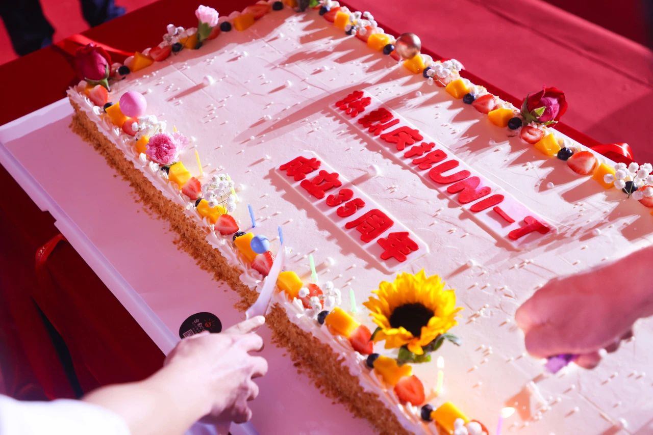 在優(yōu)利德35周年慶典的特別時刻,精心準備的超大型蛋糕成為了全場矚目的焦點。優(yōu)利德創(chuàng)始人洪佳寧先生、董事長洪少俊先生、副董事長洪少林先生以及股東代表等一同上臺,共同完成了這個具有特殊意義的儀式——切蛋糕。當那塊象征著公司歷史與成就的“優(yōu)利德成立35周年”蛋糕被緩緩推上臺時,全場的氣氛達到了高潮。熱烈的掌聲和歡呼聲交織在一起,為優(yōu)利德邁入35周年慶典獻上最真摯的祝福。這一刻,不僅是對優(yōu)利德過去35年奮斗與成就的肯定,更是對未來美好前景的期許。