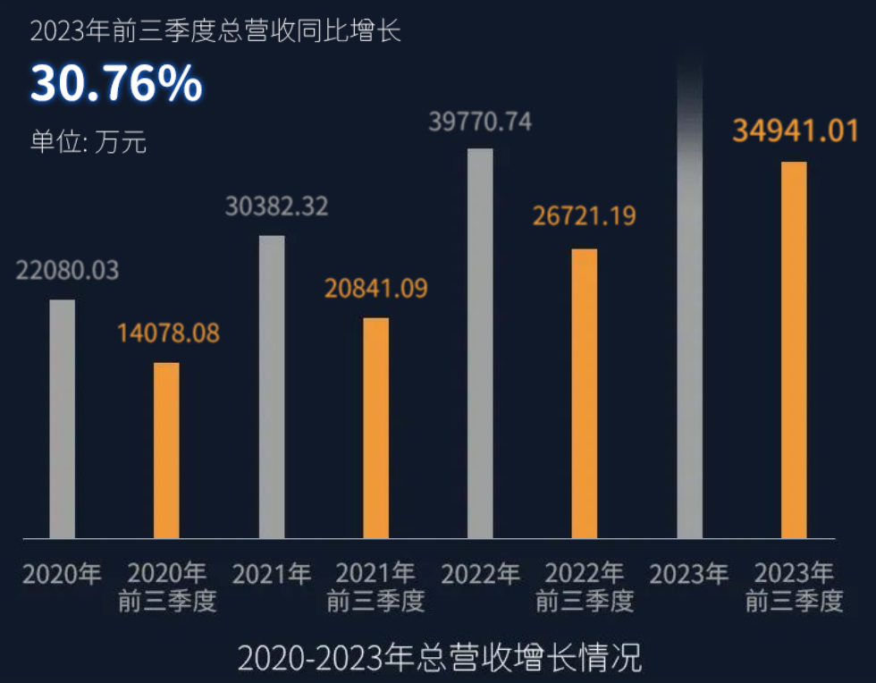 2023年,盡管受國(guó)內(nèi)經(jīng)濟(jì)增長(zhǎng)放緩,國(guó)內(nèi)市場(chǎng)需求不及預(yù)期,增速回落的影響,鼎陽(yáng)科技依舊延續(xù)了2022年的增長(zhǎng)態(tài)勢(shì),繼續(xù)攀升,前三季度營(yíng)業(yè)收入同比增長(zhǎng) 30.76%,前三季度營(yíng)收可達(dá)2021年全年?duì)I收的115%