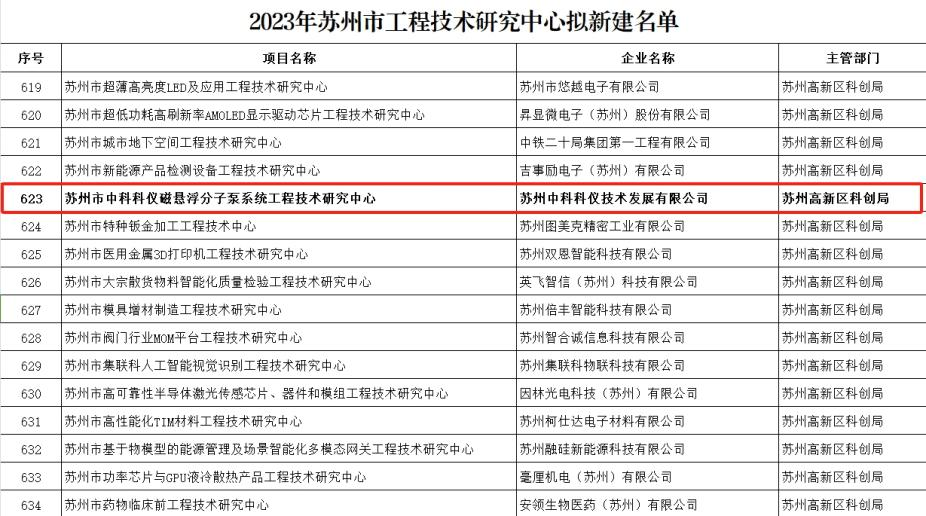近日,蘇州市科技局公布了2023年蘇州市工程技術(shù)研究中心名單。蘇州中科科儀技術(shù)發(fā)展有限公司憑借在真空獲得領(lǐng)域的領(lǐng)先技術(shù)和成果積累成功入選,被認定為“2023年蘇州市工程技術(shù)研究中心”,這是公司今年繼入選2023年江蘇省重大項目之后的又一市級榮譽,標(biāo)志著在高端科學(xué)儀器裝備與核心零部件領(lǐng)域的創(chuàng)新邁上了新的臺階。