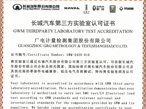 近日,廣州廣電計量檢測(上海)有限公司電磁兼容檢測實驗室成功獲得福特汽車FMC1278 Rev 4全項目檢測試驗全球授權(quán)認可、長城汽車EMC和電氣性能檢測試驗授權(quán)認可,后續(xù)將為汽車企業(yè)嚴格質(zhì)量管控、提升產(chǎn)品質(zhì)量、打造核心競爭力提供有力技術(shù)支持,表明了合作伙伴對廣電計量技術(shù)能力、硬件配置、人才團隊、質(zhì)量管控等全方位綜合實力的肯定。