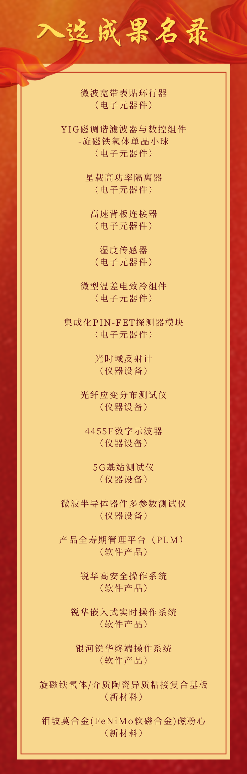 近日,國(guó)資委公布《中央企業(yè)科技創(chuàng)新成果產(chǎn)品手冊(cè)(2023年版)》,中國(guó)電科18項(xiàng)成果入選,涉及電子元器件、儀器設(shè)備、軟件產(chǎn)品、新材料4個(gè)領(lǐng)域。