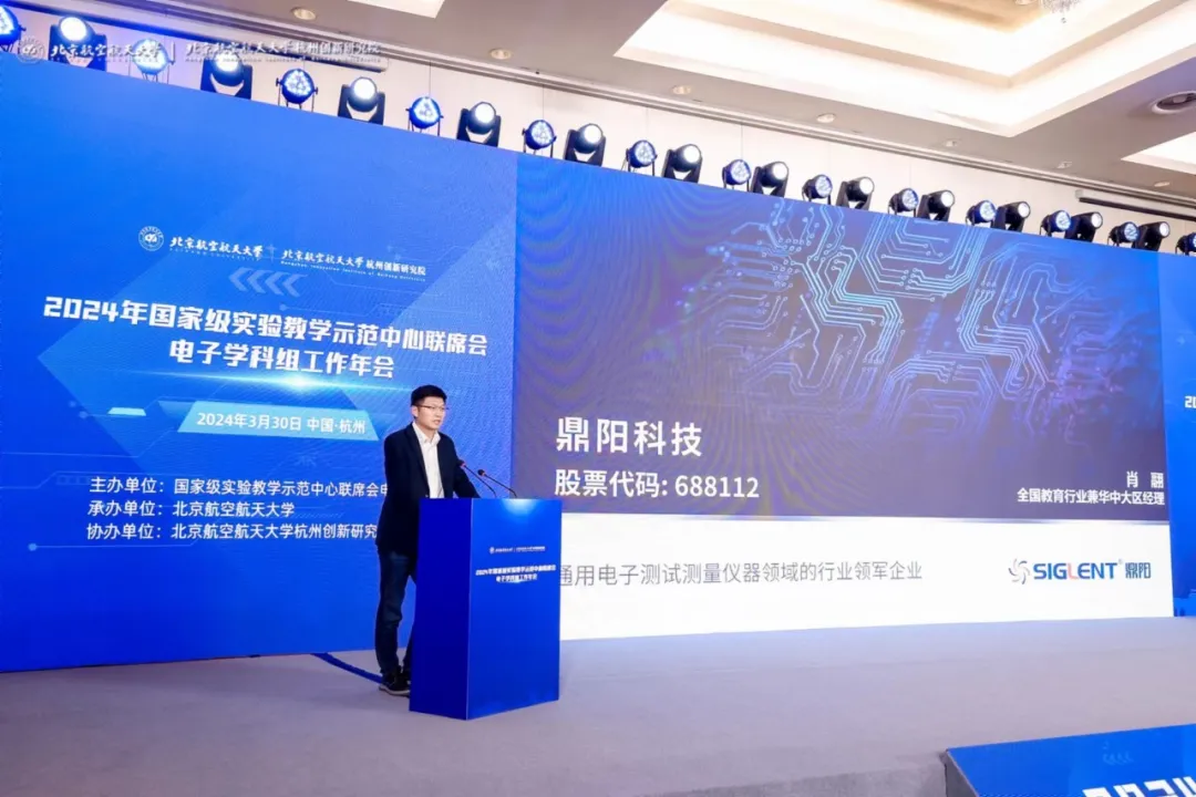 鼎陽科技本次亦受邀出席了本次會議。在會上,鼎陽科技全國教育行業(yè)兼華中大區(qū)經(jīng)理肖翮先生受邀發(fā)表演講,創(chuàng)新提出“鼎陽大學(xué)計劃”,旨在促進電子學(xué)科教育與產(chǎn)業(yè)的融合。