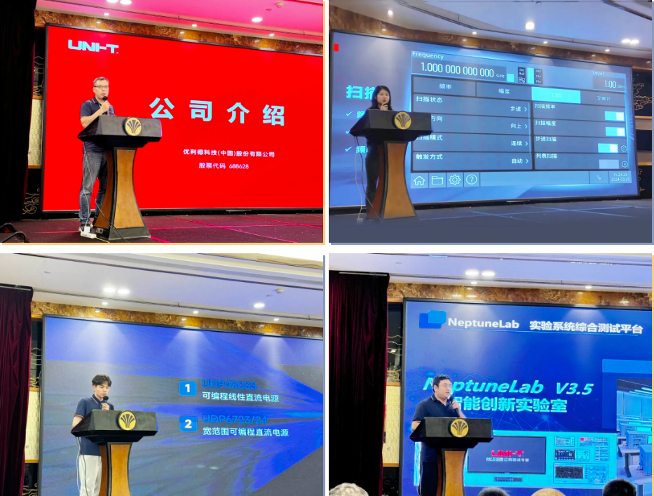 優(yōu)利德測試儀器華南區(qū)銷售總監(jiān)馬偉濤以及市場部應(yīng)用工程師們向合作伙伴、行業(yè)專家、教育工作者介紹了USG5000M系列射頻模擬信號源、UTS3000A系列實時頻譜分析儀、MSO3000HD系列高分辨率示波器、UPO7000L系列緊湊型數(shù)字熒光示波器以及UD4303S可編程線性直流電源等,全面展示了重點(diǎn)技術(shù)領(lǐng)域的前瞻性、關(guān)鍵性科研成果、技術(shù)和產(chǎn)品。