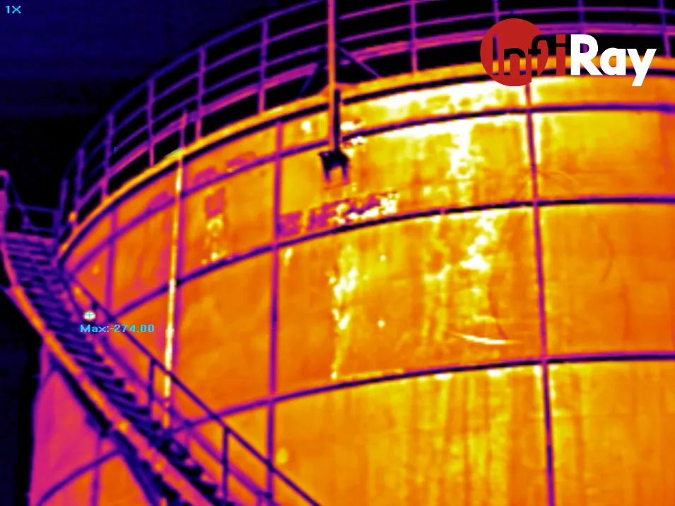 紅外熱像儀可對儲油罐區(qū)進行廣域?qū)崟r檢測,大面積的快速掃描,清晰地顯示出儲罐表面的溫度分布,精準定位泄露點。遠程掃描不僅降低工作的安全風險,還不受環(huán)境限制,夜間及惡劣天氣也能測,靈活可靠。圖片