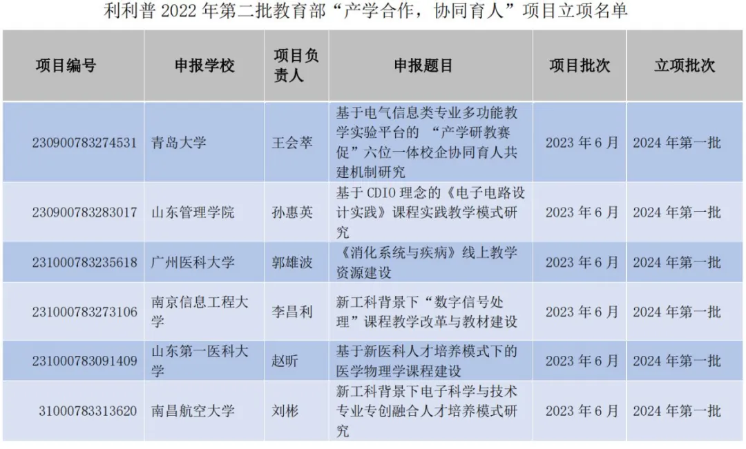 福建利利普光電科技有限公司參加2024年第一批的產(chǎn)學(xué)合作協(xié)同育人項(xiàng)目,經(jīng)教育部最終嚴(yán)格審核,具體名單現(xiàn)公布如下: