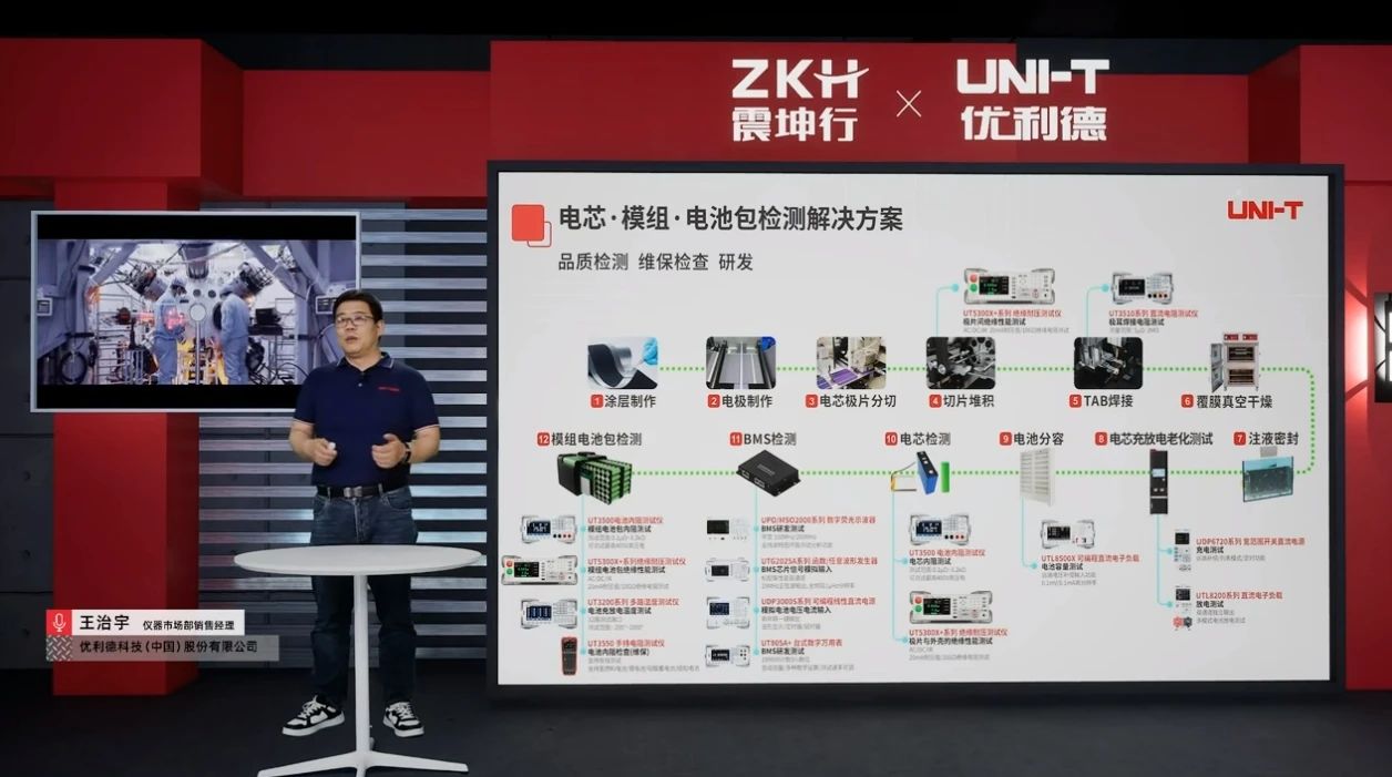 優(yōu)利德測試儀器華東區(qū)銷售經(jīng)理王治宇帶來了關于《電芯·模組·電池包檢測解決方案》的詳細闡述。