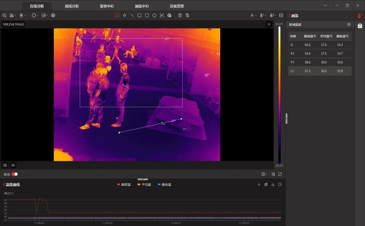 高清的紅外圖像可實(shí)時(shí)呈現(xiàn)鋰電池表面的溫度分布情況,一旦發(fā)現(xiàn)溫度異常,立即發(fā)出預(yù)警信號,并觸發(fā)聲光報(bào)警。還可以與消防系統(tǒng)聯(lián)動(dòng)及時(shí)進(jìn)行火情撲救。
