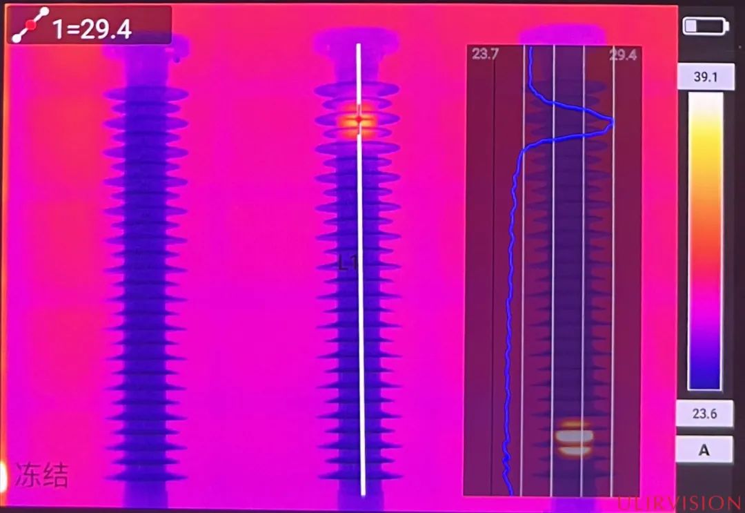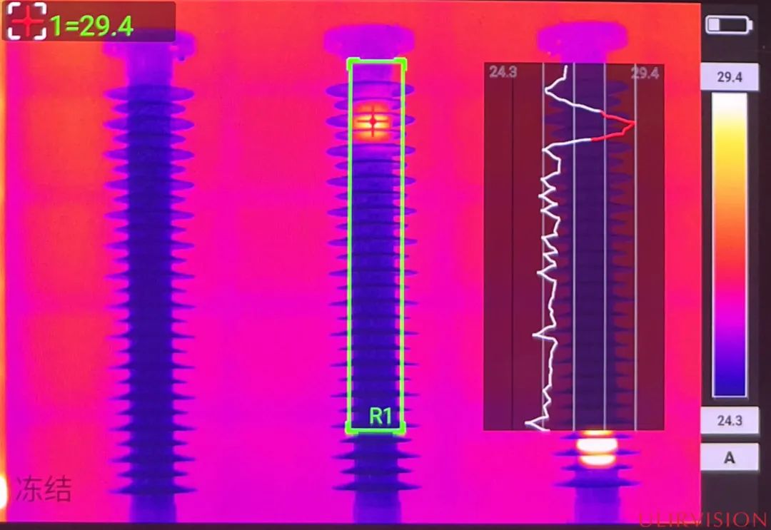 T70內(nèi)置自主開發(fā)的低值零值絕緣子診斷算法,根據(jù)絕緣子串的熱像特征,凸顯溫度差異,可直觀呈現(xiàn)低至0.5k的微小溫度差異,輔以溫度曲線分布和診斷規(guī)則,研判低值、零值絕緣子,幫助運(yùn)維人員及時(shí)發(fā)現(xiàn)輸、變電絕緣子設(shè)備的熱缺陷。