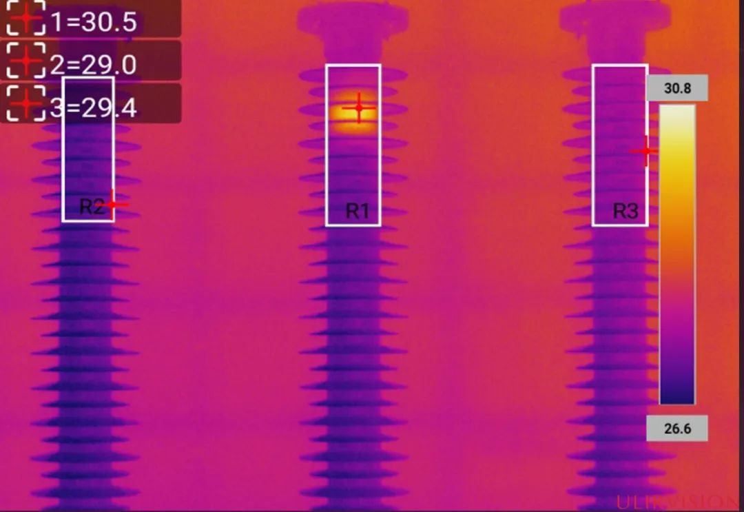 現(xiàn)場教學(xué)中,實(shí)驗(yàn)裝置模擬了避雷器發(fā)熱,T70呈現(xiàn)了良好的檢測(cè)效果,得到了廣大師生認(rèn)可。針對(duì)電壓致熱型設(shè)備溫差小、發(fā)現(xiàn)困難的痛點(diǎn),工程師還重點(diǎn)介紹了測(cè)試電壓致熱中常使用的分析工具,包括了線測(cè)溫、開窗、絕緣子三大模式。