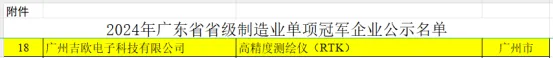 近日,廣東省工業(yè)和信息化廳公布2024年廣東省省級制造業(yè)單項冠軍企業(yè)名單,北京合眾思壯科技股份有限公司(簡稱“合眾思壯”)旗下廣州吉歐電子科技有限公司(簡稱“吉歐電子”)成功入選。