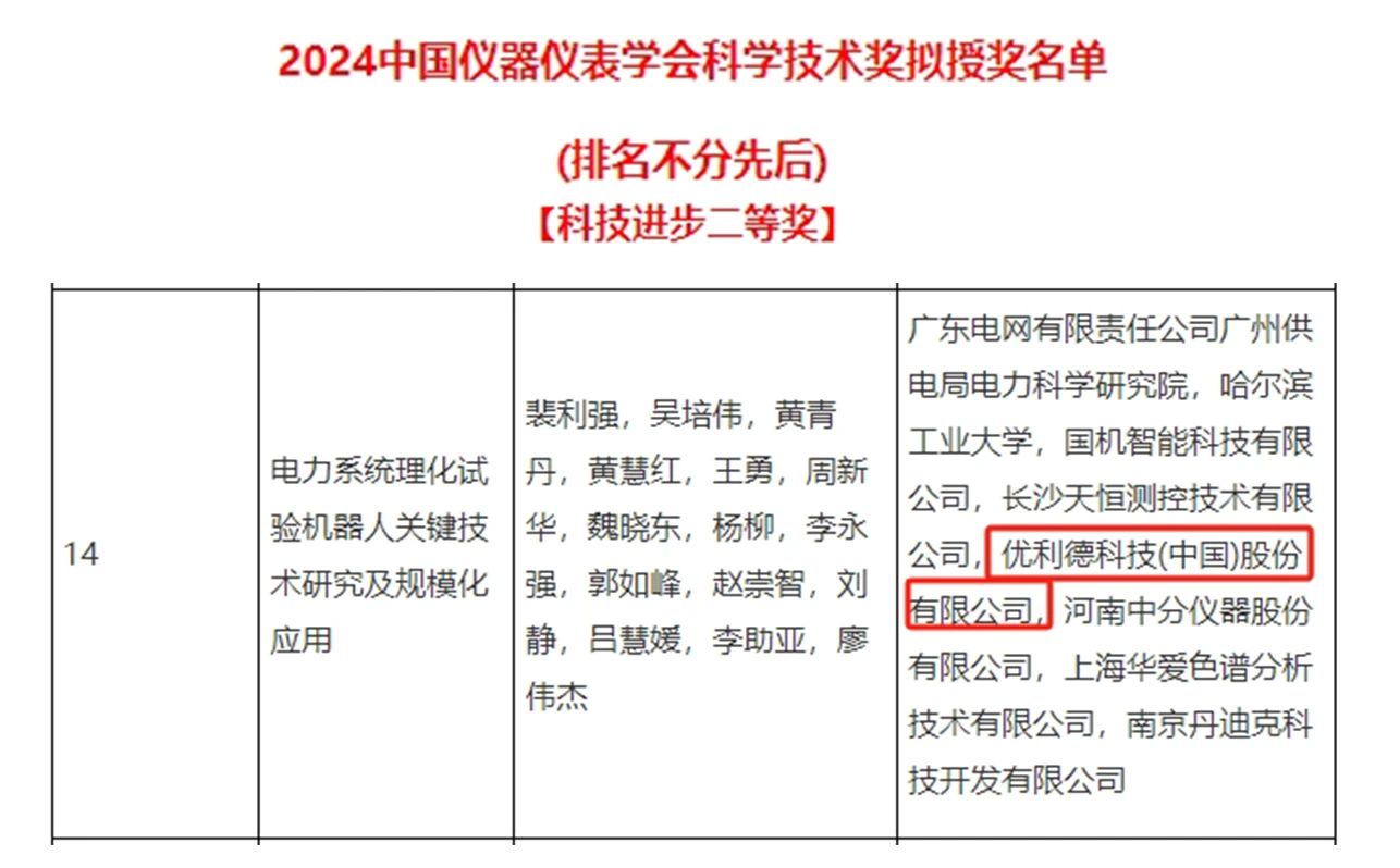 近日,中國儀器儀表學(xué)會正式公布了2024年中國儀器儀表學(xué)會科學(xué)技術(shù)獎獲獎名單。其中,優(yōu)利德參與的《電力系統(tǒng)理化試驗(yàn)機(jī)器人關(guān)鍵技術(shù)研究及規(guī)模化應(yīng)用》項(xiàng)目榮獲科技進(jìn)步二等獎。