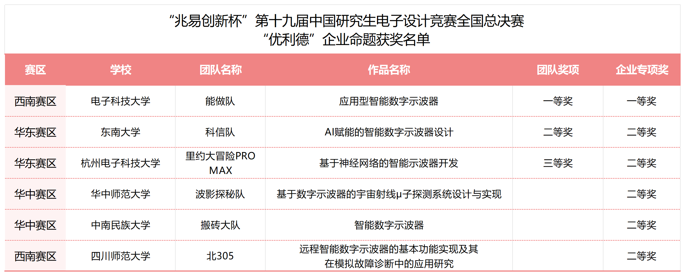 優(yōu)利德企業(yè)命題獲獎名單