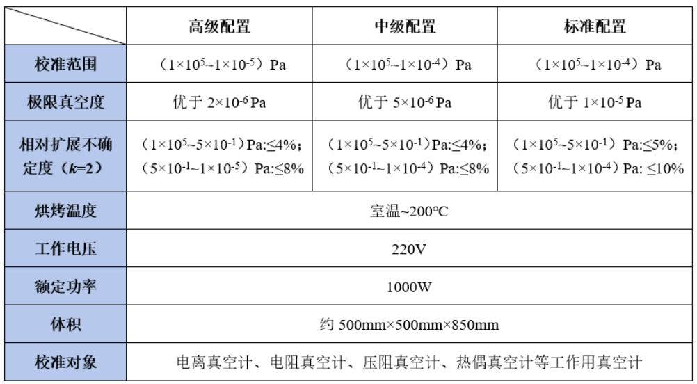 本裝置主要由校準(zhǔn)系統(tǒng)、抽氣系統(tǒng)、供氣系統(tǒng)、測量系統(tǒng)等組成。校準(zhǔn)室是球形容器,球形結(jié)構(gòu)是真空校準(zhǔn)裝置的理想結(jié)構(gòu)形式。抽氣系統(tǒng)由真空泵、閥門等組成。進(jìn)氣系統(tǒng)主要由穩(wěn)壓室、閥門和氣源組成。真空測量系統(tǒng)主要由真空計(jì)組成。采用靜態(tài)比對法、動(dòng)態(tài)比對法、靜態(tài)膨脹法、動(dòng)態(tài)流量法四種方法進(jìn)行校準(zhǔn)。其中,高配置產(chǎn)品擁有上述四種校準(zhǔn)能力,中配置和低配置產(chǎn)品同樣擁有靜態(tài)比對法和動(dòng)態(tài)比對法兩種校準(zhǔn)能力,低配置產(chǎn)品校準(zhǔn)范圍較中配置產(chǎn)品更小。
