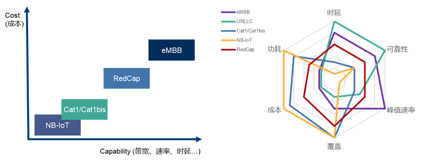 對(duì)于物聯(lián)網(wǎng)產(chǎn)品而言,Cat1bis(單天線Cat1)以其極端簡(jiǎn)化的特性定義面向廣大低復(fù)雜度以及時(shí)延不敏感的應(yīng)用。而RedCap對(duì)標(biāo)準(zhǔn)5G技術(shù)進(jìn)行一定程度的裁剪從而面向較低復(fù)雜度和功耗要求的中高端物聯(lián)網(wǎng)應(yīng)用。