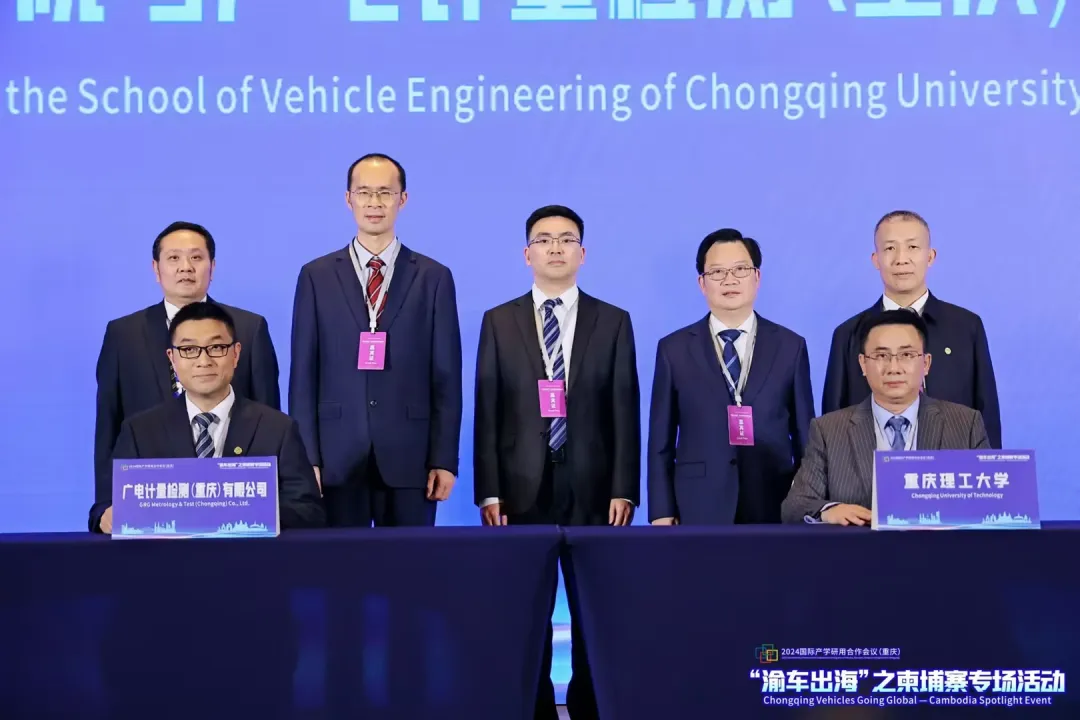 11月10日,“2024國際產(chǎn)學(xué)研用合作會議(重慶)——‘渝車出海’之柬埔寨專場論壇”在重慶山城國際會議中心舉行。會上舉行了國際產(chǎn)學(xué)研用合作項目簽約儀式,廣電計量檢測(重慶)有限公司(簡稱“重慶廣電計量”)與重慶理工大學(xué)車輛工程學(xué)院簽署戰(zhàn)略合作協(xié)議。