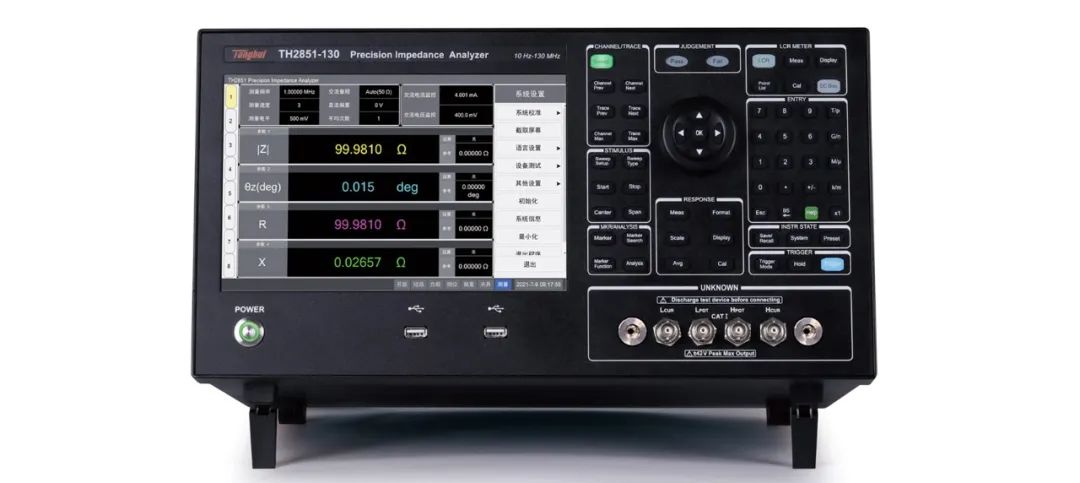TH2851系列是同惠電子采用當前先進自動平衡電橋原理研發(fā)的新一代阻抗測試儀,為國產(chǎn)阻抗測試儀器天花板。該儀器在10Hz-130MHz、1mΩ-100MΩ范圍內(nèi)精度高達0.08%,遠超射頻阻抗分析儀和網(wǎng)絡(luò)分析儀,支持等效電路、晶體振蕩器、壓電分析及多種選件分析。