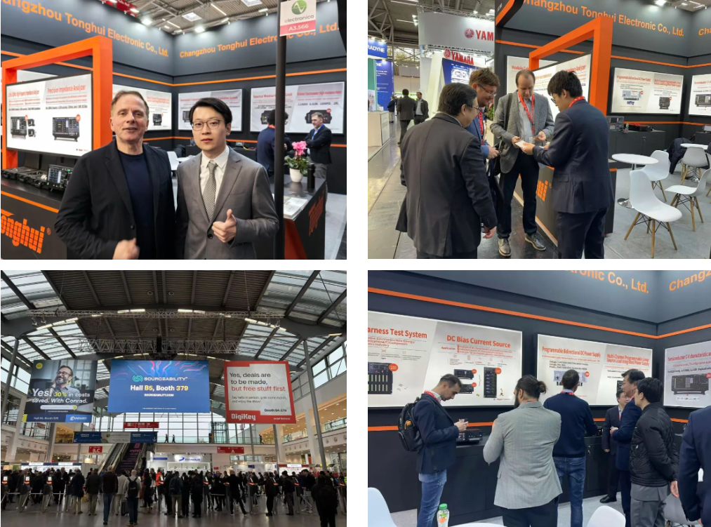 2024年11月12-15日,同惠電子(Tonghui)在董事長趙浩華先生的帶領(lǐng)下,攜眾多創(chuàng)新產(chǎn)品亮相德國慕尼黑國際電子展。展會現(xiàn)場人頭攢動,同惠TH2851系列精密阻抗分析儀、TH199X系列高精度源表和TH2690系列飛安表/皮安表/靜電計/高阻計等新品,成功吸引了不同行業(yè)領(lǐng)域的觀眾和工程師們,并展開了積極的互動與深入的合作探討。