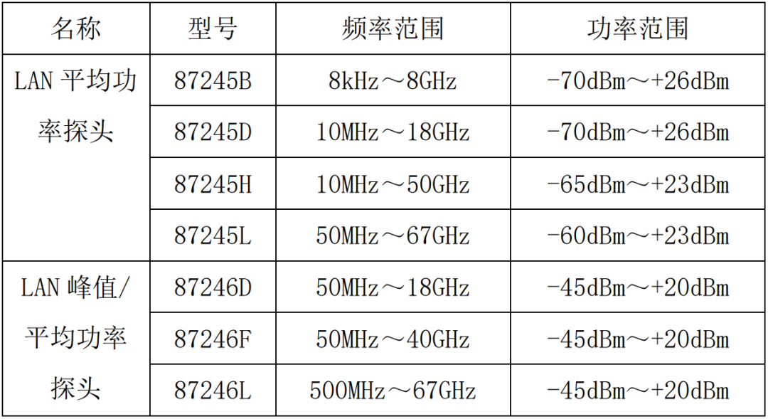 表1 系列LAN功率探頭主要技術(shù)指標(biāo)