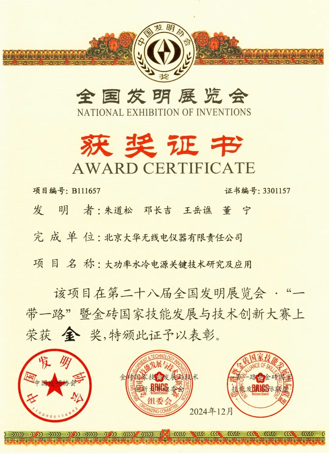 近日,為期3天的第二十八屆全國發(fā)明展覽會(huì)·“一帶一路”暨金磚國家技能發(fā)展與技術(shù)創(chuàng)新大賽在中山市小欖鎮(zhèn)落下帷幕,展示眾多前沿科技和發(fā)明成果并評(píng)選獎(jiǎng)勵(lì)優(yōu)秀成果。大華公司“大功率水冷電源關(guān)鍵技術(shù)研究及應(yīng)用”項(xiàng)目脫穎而出,榮獲金獎(jiǎng)!