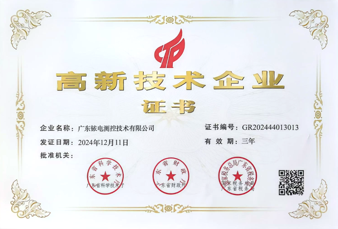 喜訊!銥電測控榮獲高新技術(shù)企業(yè)證書