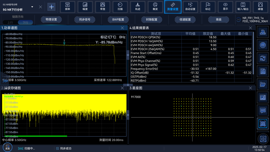 EVM測(cè)試結(jié)果(5GNR FR1,100MHz,256QAM,30kHz SCS,3.5GHz)