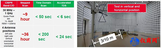 · 標(biāo)準(zhǔn)時(shí)域掃描(TDS)功能和加速TDS(可選,比TDS快6倍多)功能可滿足駐留測(cè)量要求,同時(shí)將接收機(jī)的掃描和測(cè)試時(shí)間從數(shù)小時(shí)減少到幾秒(參見下圖)。