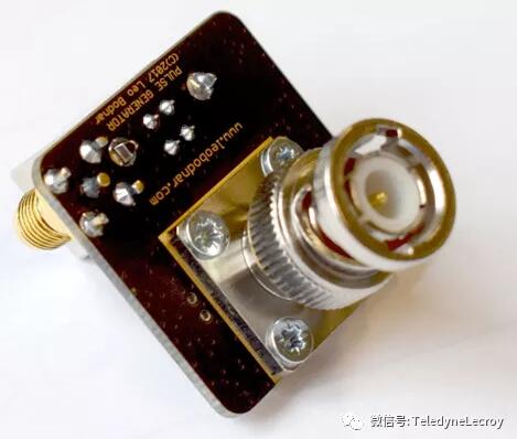 對(duì)于任何示波器帶寬/上升時(shí)間的驗(yàn)證測(cè)試,都需要一個(gè)已知的快沿信號(hào)源,該信號(hào)源帶寬超過(guò)測(cè)量系統(tǒng)的帶寬,以便可以測(cè)試測(cè)試設(shè)備的帶寬極限。使用市場(chǎng)上找到的電路板,該電路板可以產(chǎn)生上升時(shí)間大約40ps的快沿信號(hào),并通過(guò)BNC電纜連接到示波器,以輸入50歐姆,1 V峰峰值的信號(hào)。