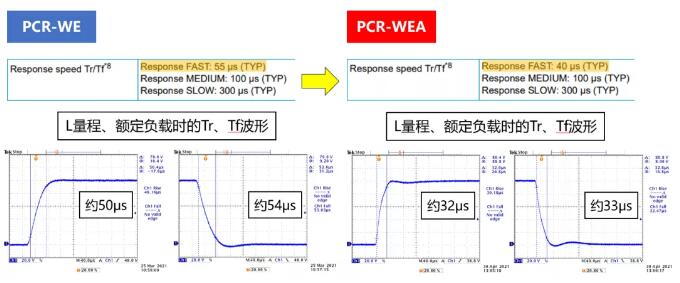 RESPONSE設(shè)定:FAST的響應(yīng)速度從55μs加快至40μs??蓪?duì)應(yīng)IEC61000-4-29(直流的電壓驟降)