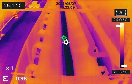 使用紅外熱像儀檢測工作溫度,當溫度的變化在正常范圍內波動,能大大降低因潤滑不良造成的燒瓦和齒輪失效現(xiàn)象,延長棒材生產(chǎn)線的安全運行時間。